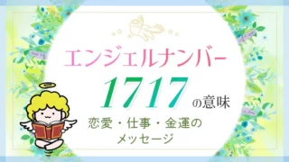 エンジェルナンバー【1717】の意味丨恋愛成就やツインレイを解説エンジェルナンバー【1717】は、直感を信じて、勇気を持って新しい一歩を踏み出そうという天使からのメッセージ。【1717】のスピリチュアルな意味や恋愛・ツインレイ、仕事や金運、健康への影響を詳しく解説します。...