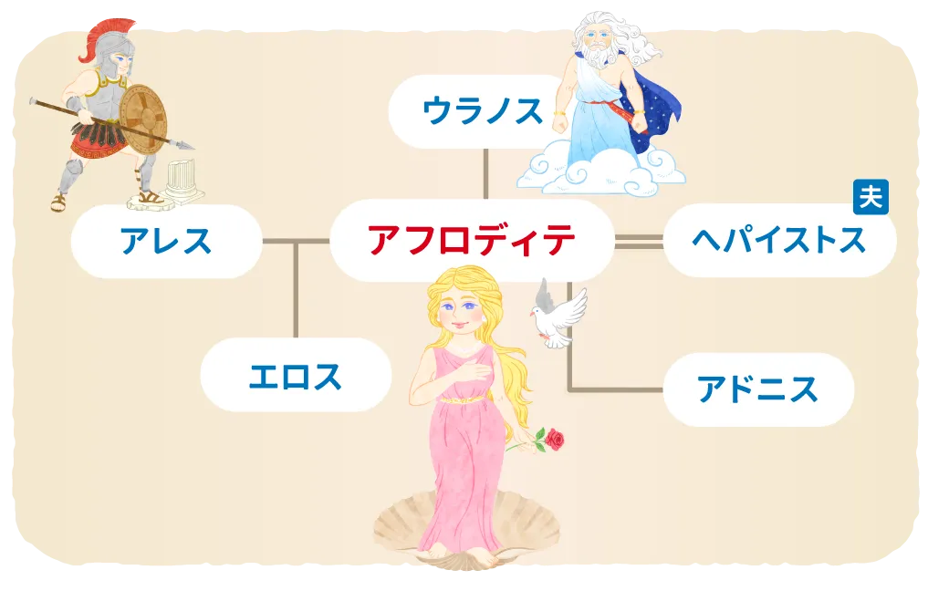 【アフロディテの家系図】神々とのつながりと家族関係